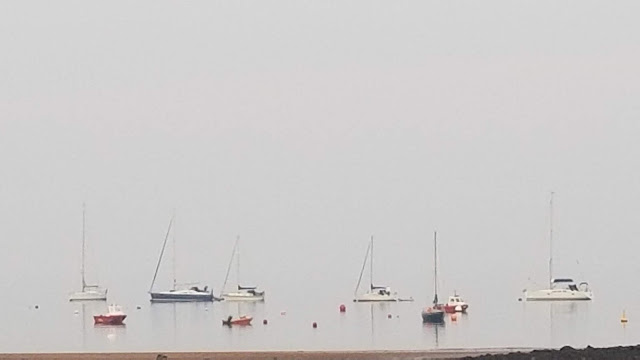 It is very hazy today - perhaps the humidity or sea mist? It created an ethereal view of the harbor without a horizon line.